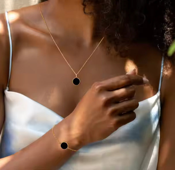 צמיד דק ואלגנטי בעיצוב קלאסי, עם תליון עגול שחור שמסתיר בתוכו סוד ייחודי – התמונה האישית שלכם מתגלה במגע עם חום הגוף. פריט מושלם לכל מי שאוהב עיצוב נקי עם משמעות עמוקה.