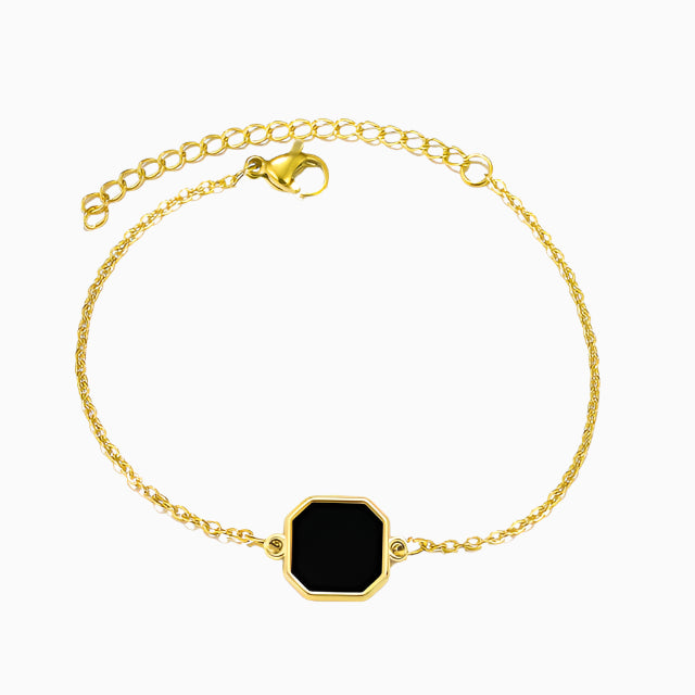 צמיד אלגנטי ומינימליסטי עם תליון מתומן בגוון שחור, המסתיר בתוכו הפתעה מיוחדת – התמונה האישית שלכם נחשפת במגע עם חום הגוף. מתנה ייחודית ומרגשת לכל אירוע ולכל אחד שאוהב פריטים עם ערך רגשי.